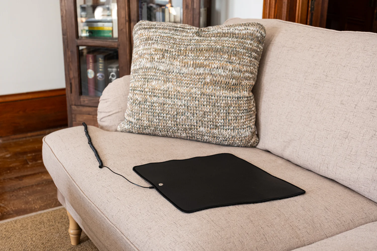 The anti-fatigue seat mat provides a convenient way to connect to the Earth's electrical field while you are indoors. For additional information about this handy earthing mat, visit our blog, "Indoor Earthing". The more time you spend grounded, the better. To use the mat, attach the 15' cord to the mat and plug it into a grounded wall outlet. You can utilize this earthing mat in multiple positions, including sitting, standing, or sleeping. The mat is shaped like a seat with one slightly wider side and measures approximately 13" x 13". The thin black top conductive layer comprises PU (Polyurethane) resin. It is vinyl-free and phthalate-free. The thin black layer of PU leather is infused with conductive carbon pigment for the conductive top layer. Carbon is the 2nd most abundant element in the human body after oxygen and is what conducts the Earth's energy. The bottom, or non-conductive layer, comprises TPE (Thermoplastic Elastomer) closed-cell foam (latex and PVC free). Bare skin is best for contact with the mat, but a natural material such as cotton can allow earthing. Cleaning is easy—wipe with a damp cloth or mild soap and warm water.